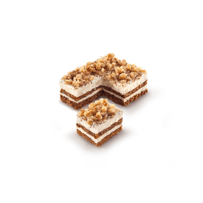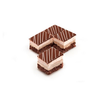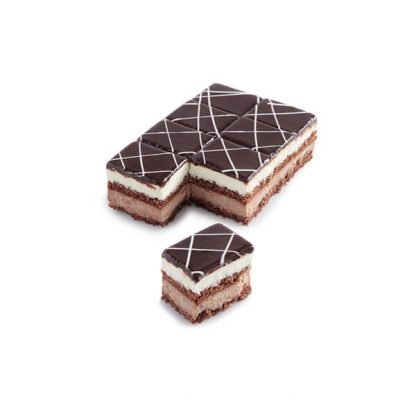 Classic flavor of mixed cake with juicy sponge cake with cocoa flavor, layer of rich white cream and layer of fluffy bitter chocolate cream and coating of bitter chocolate.