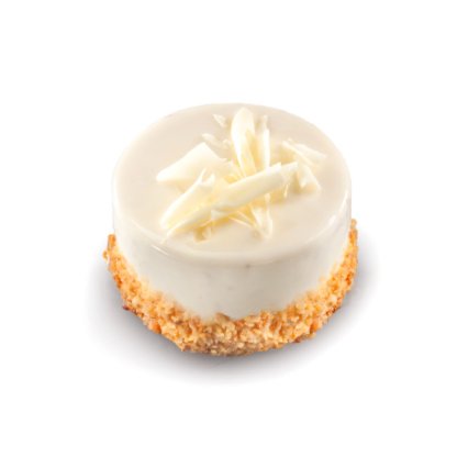 Classic white almond individual cake with white cream, almond pieces and white chocolate.