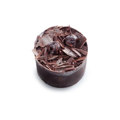 The ultimate black forest individual cake with cocoa sponge, white cream, amarena fruit and dark chocolate couverture.